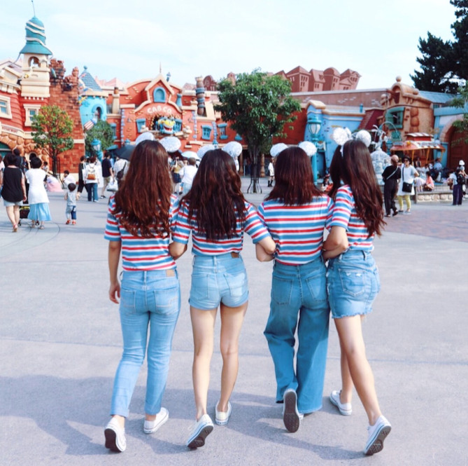ディズニーで友達とお揃いコーデ60選 双子 グループ着こなし集 カウモ かわいい ファッション お揃いコーデ ファッション